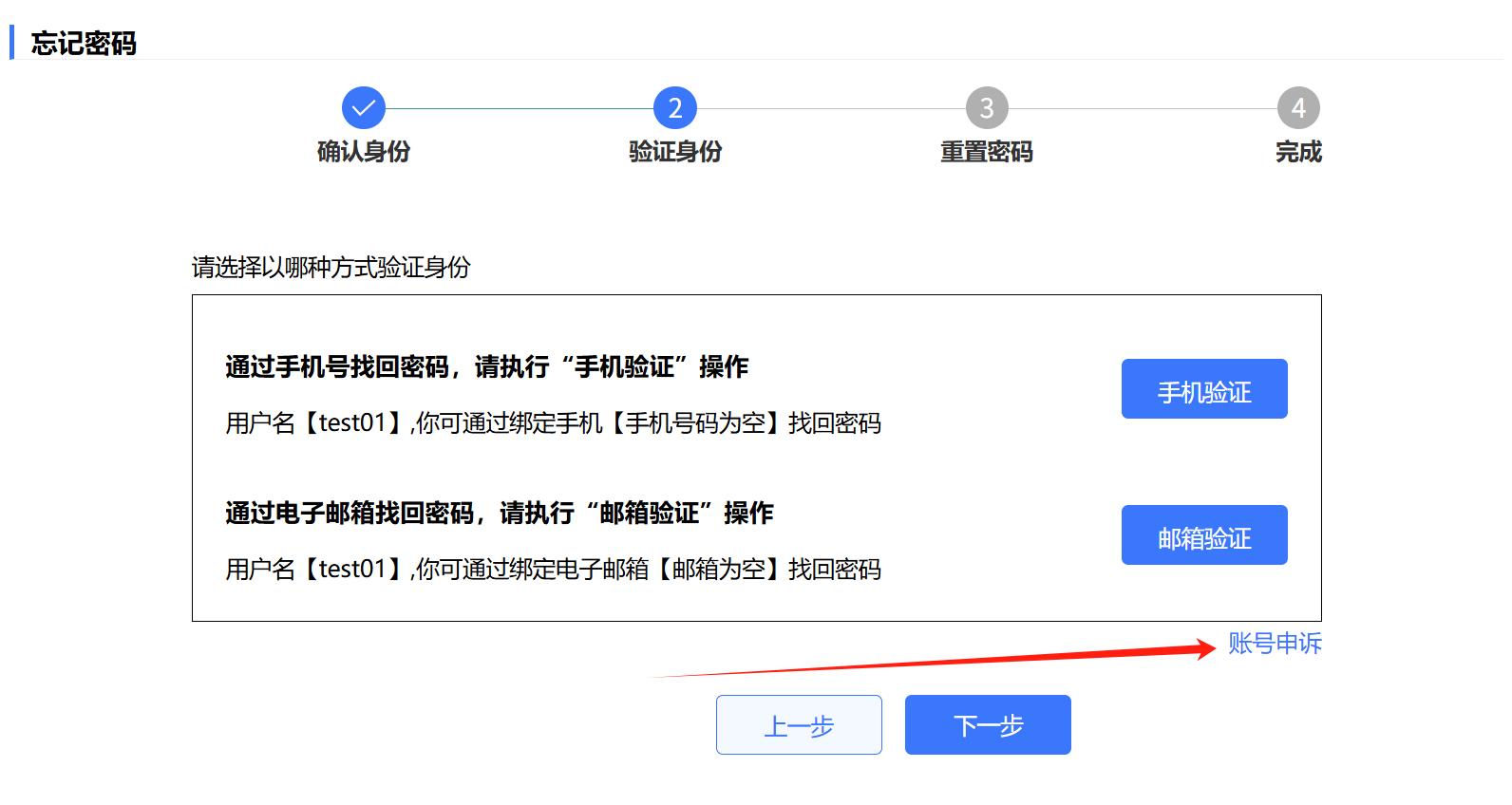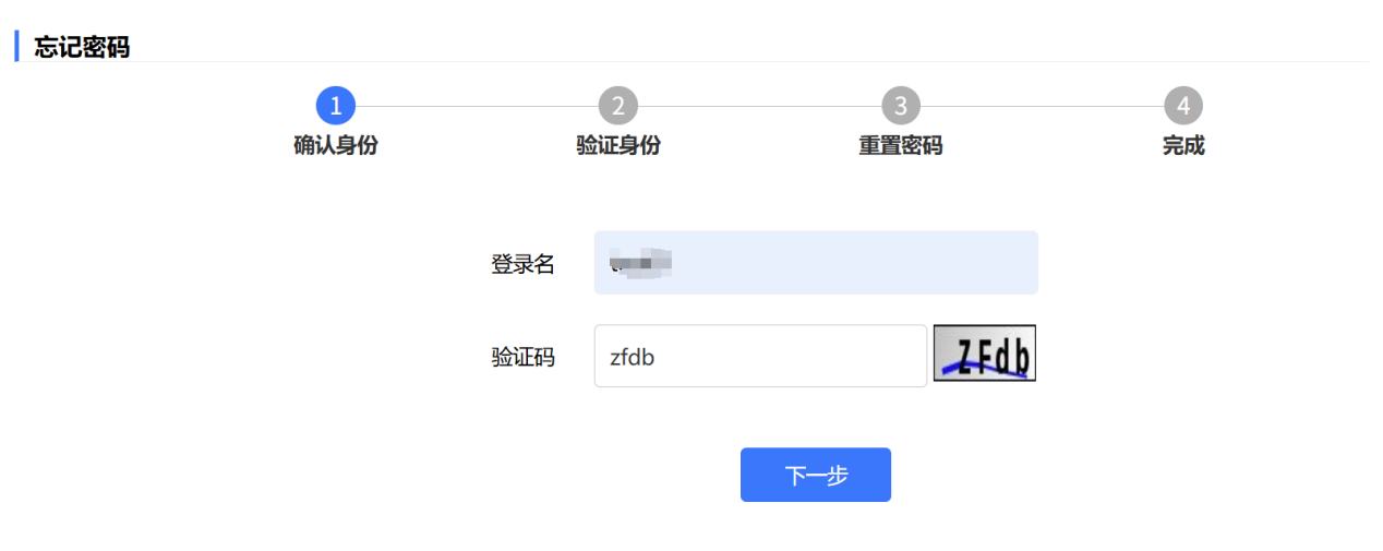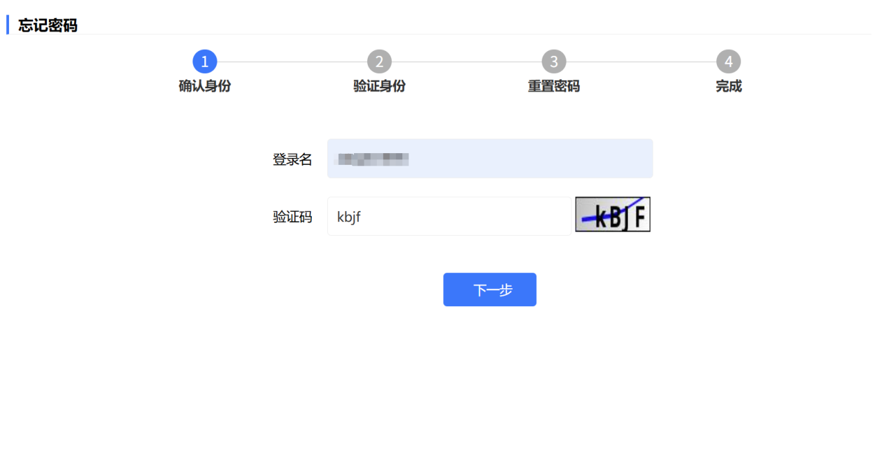 输入登录名和验证码,点击“下一步”打开验证身份页面。