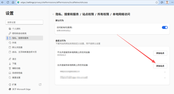 在弹出的所有权限最下面,找到“本地网络访问”。